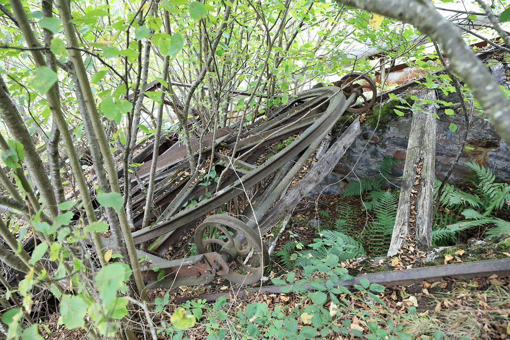 21/08/2022 | Sous la recette inférieure du monocâble provenant de Rouge, poulie sur rail utilisée pour mettre en tension le câble