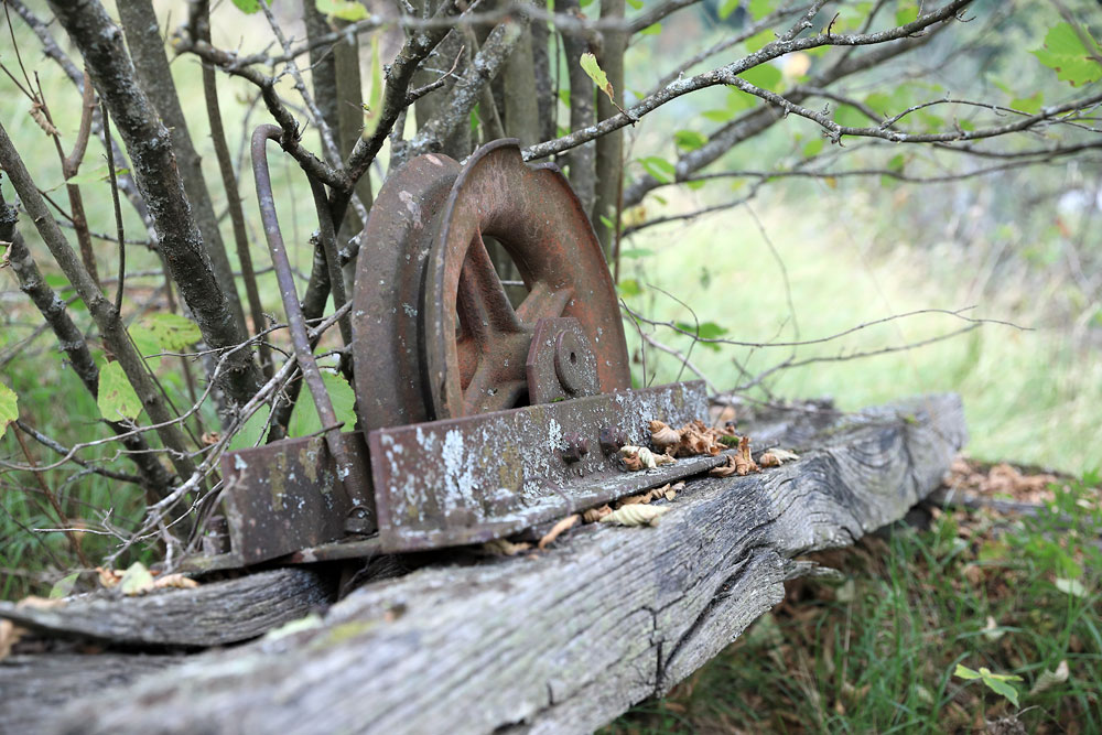 21/08/2022 | Poulie abandonnée en contrebas de la recette inférieure du monocâble provenant de Rouge