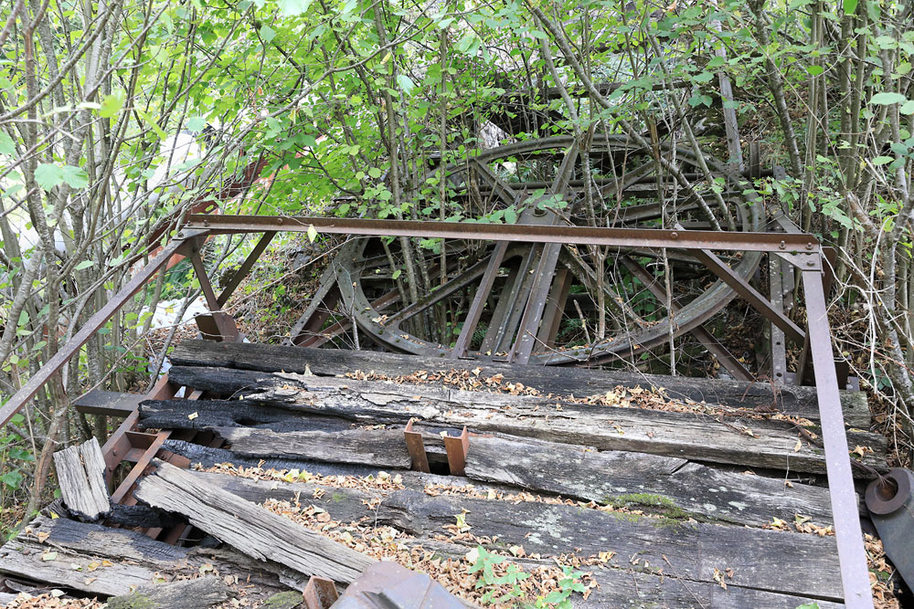 21/08/2022 | Sous la recette inférieure du monocâble provenant de Rouge, poulie sur rail utilisée pour mettre en tension le câble