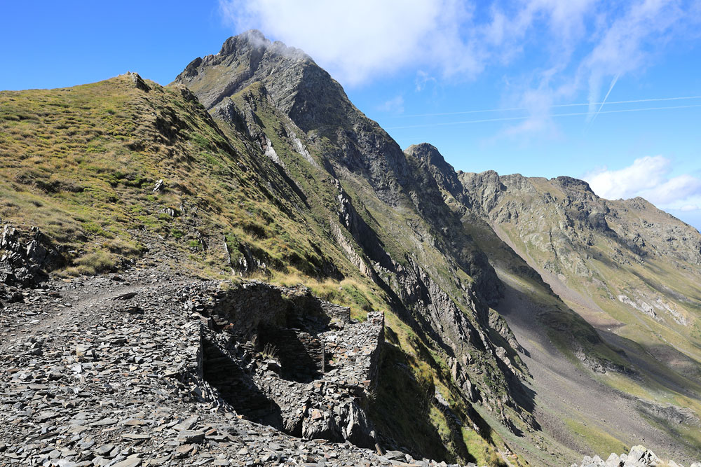 20/08/2022 | Vestiges de baraques au port d'Urets - en arrière plan, le pic du Maubermé