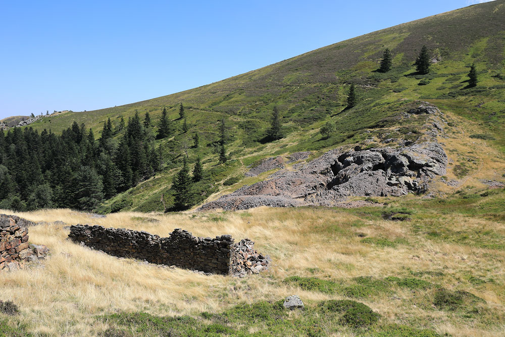 21/08/2023 | Vestiges des cabanes des mineurs ; au second plan les travaux miniers affleurent à la surface