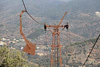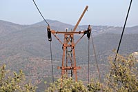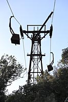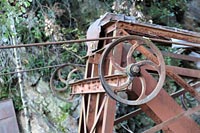 La mine étant située à 478 mètres d'altitude, un transbordeur aérien monocâble de 1800 mètres de long fut construit pour descendre le talc au hameau du Mas Casals. Le câble supportait 24 bennes non débrayables pouvant contenir 200 kg de talc brut. Une courte voie de roulage reliait la sortie du travers-banc à la station de départ du transbordeur. Depuis le Mas Casals, le transport s'effectuait par camions jusqu'à l'atelier de broyage situé au Pont de Reynès.