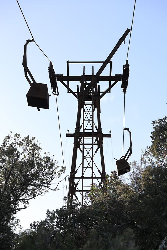 29/12/2022 | Pylône intermédiaire du câble aérien ; des bennes y sont encore accrochées
