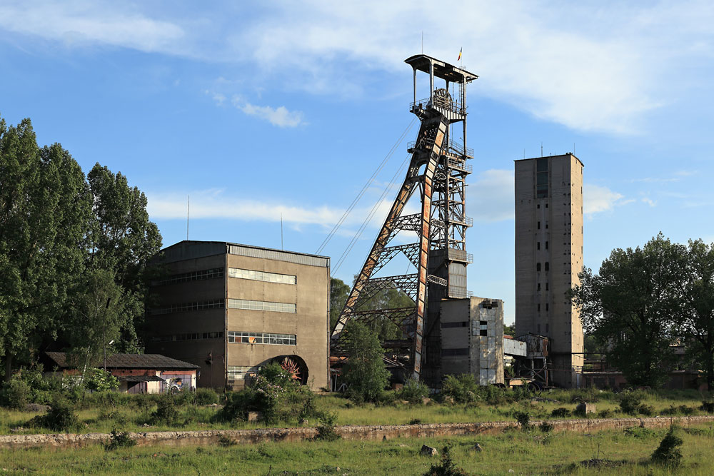 09/06/2014 | Bâtiment de la machine d'extraction et chevalement du puits d'extraction (skips) ; à droite tour d'extraction du puits ?? (abandonné)