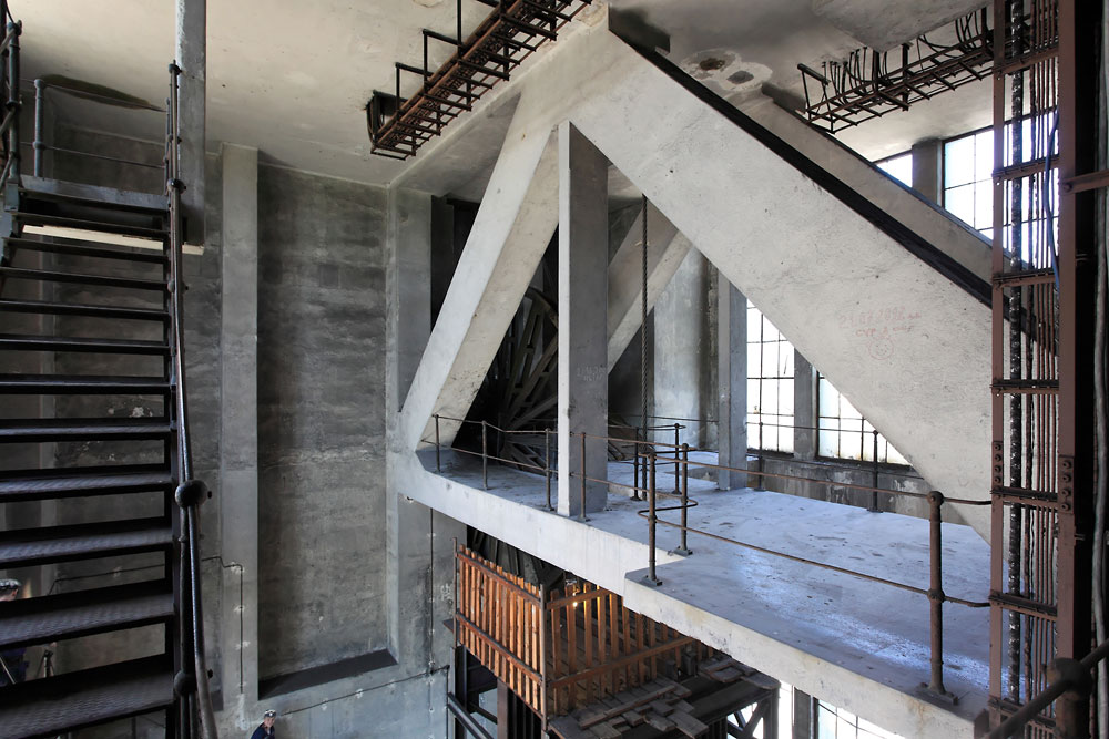 12/06/2014 | Structure en béton de la tour d'extraction du puits Central ; on aperçoit au fond une molette de contrainte