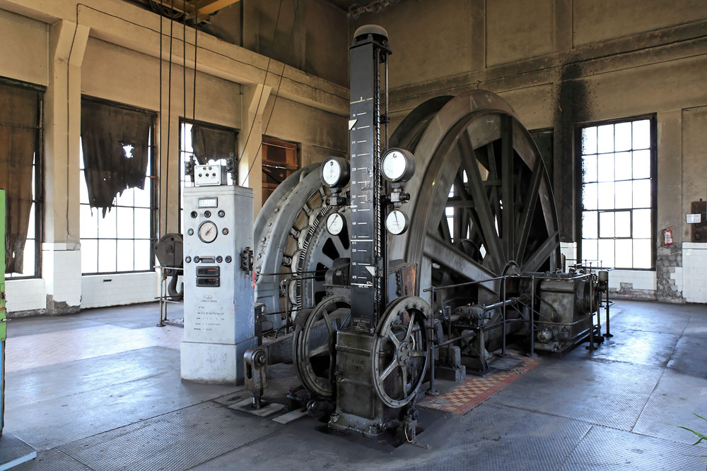 12/06/2014 | Machine d'extraction (poulie Koepe) du puits Central ; au premier plan l'indicateur de profondeur