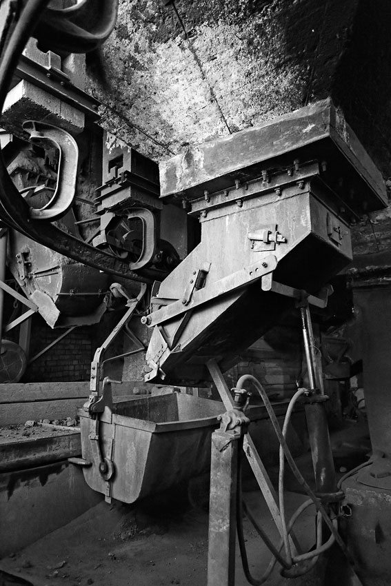 09/06/2014 | Station inférieure du téléphérique pour la mise à terril des stériles : détail sur une trémie de chargement ds bennes