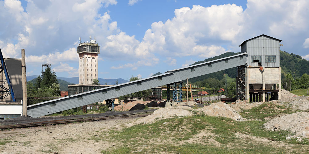 09/06/2014 | Mina Lonea : trémie de chargement des stériles et son convoyeur ; au fond tour d'extraction du puits ??? (extraction) / Petrila