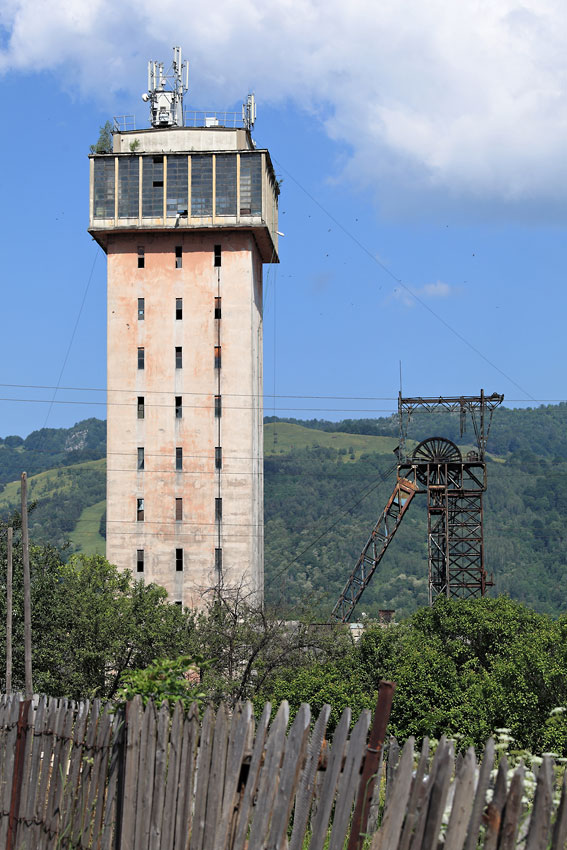 10/06/2014 | Mina Lonea : tour d'extraction du puits ??? (extraction) et chevalement du puits ??? (service) / Petrila