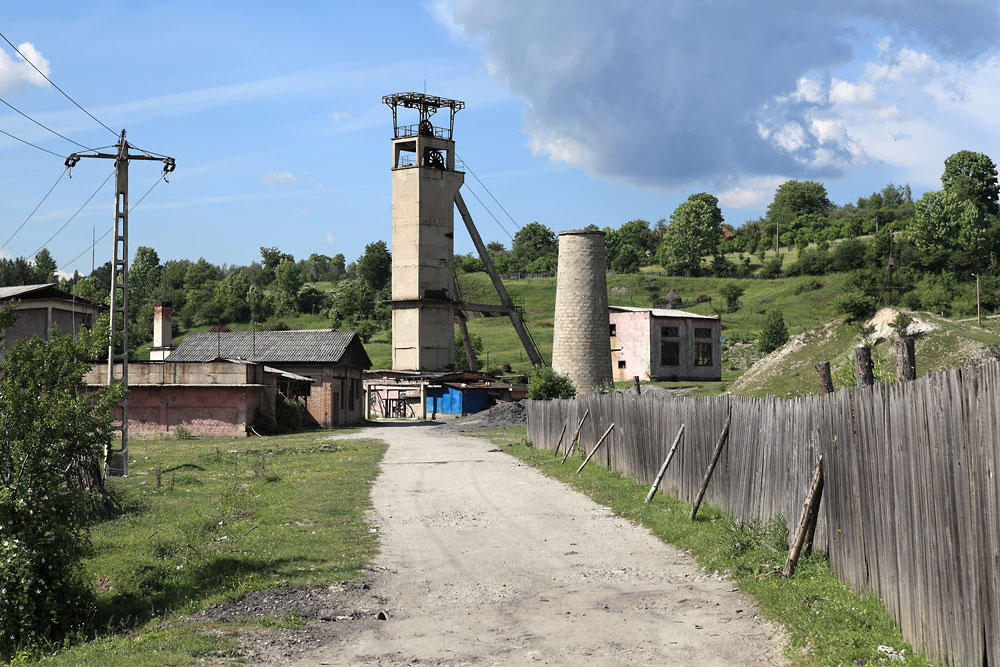 09/06/2014 | Mina Lonea : en arrivant sur le carreau du puits Jieţ et son chevalement en béton / Jieţ