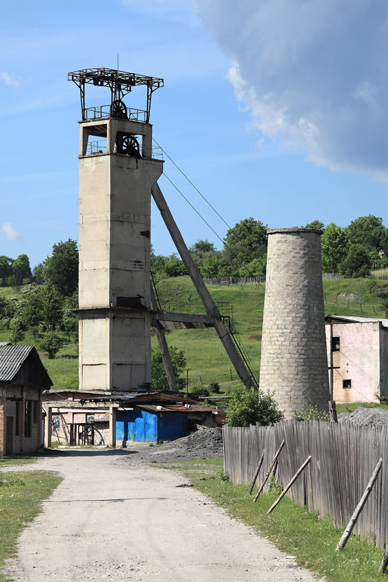 09/06/2014 | Mina Lonea : chevalement en béton du puits Jieţ et ancienne tour aéroréfrigérante / Jieţ