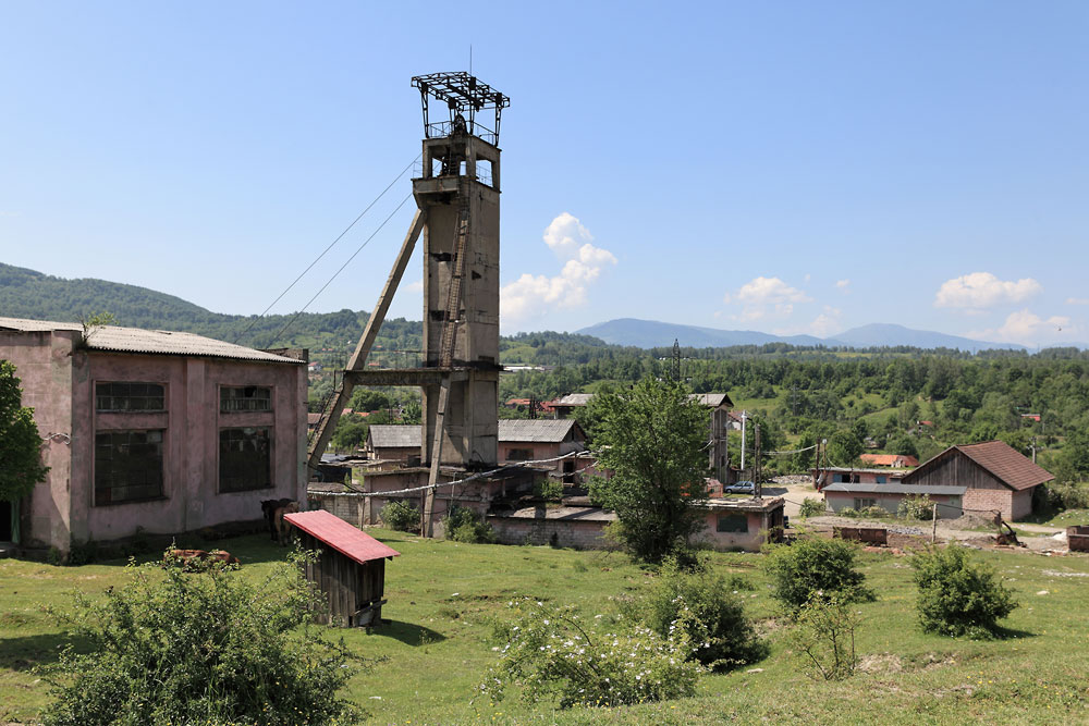 10/06/2014 | Mina Lonea : vue sur le carreau du puits Jieţ et son chevalement en béton / Jieţ