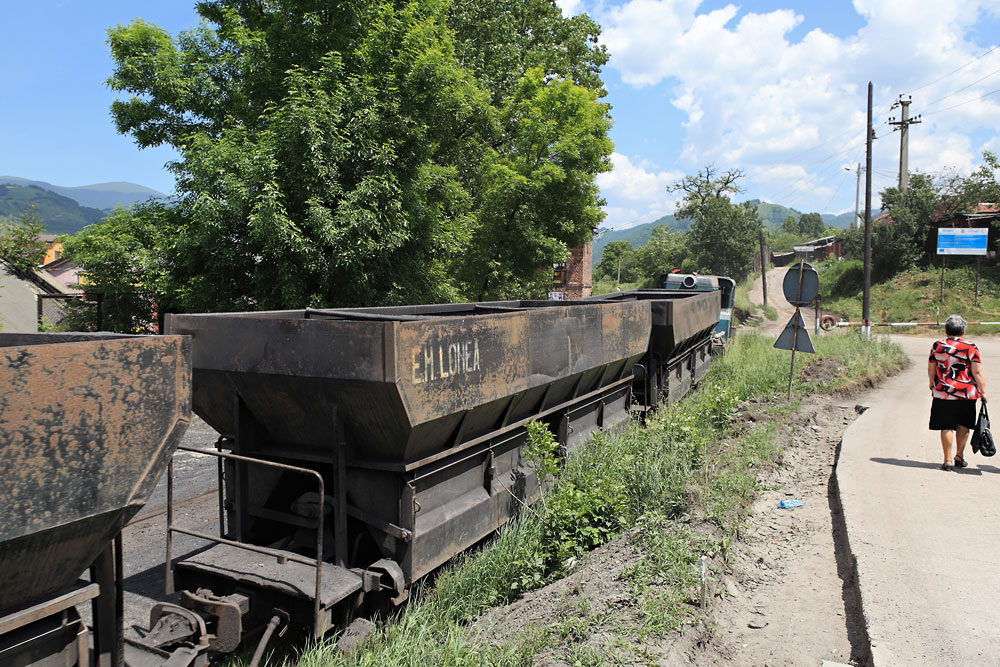 10/06/2014 | Mina Lonea : un train de wagons vides tiré par une loco Faur L45H remonte vers la mine / Chemin de fer Petrila-Lonea