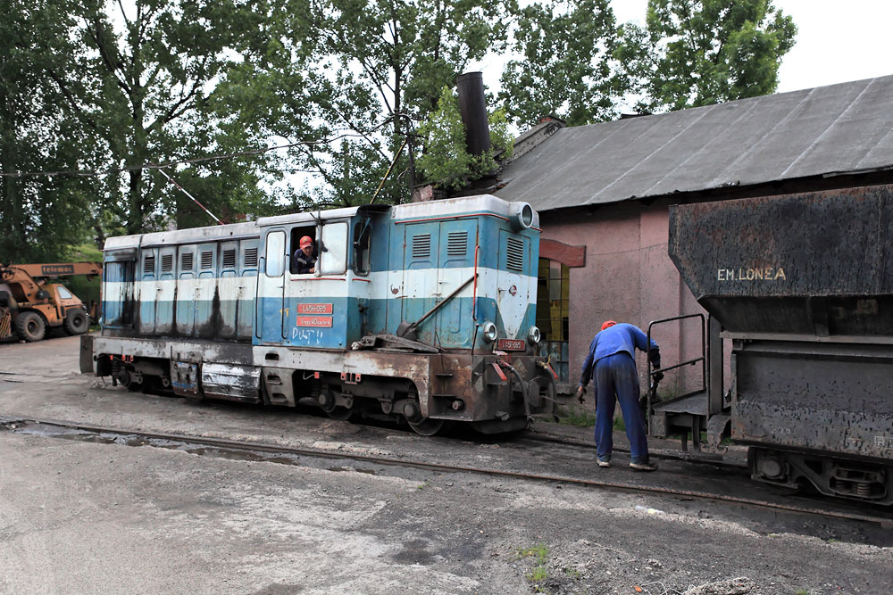 10/06/2014 | Mina Lonea : en fin de journée, manœuvre d'une loco diesel Faur L45H devant le dépôt du chemin de fer Petrila-Lonea