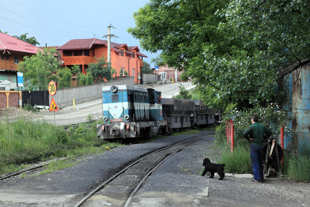 10/06/2014 | Mina Lonea : un train de wagons vides tiré par une loco Faur L45H remonte vers la mine / Chemin de fer Petrila-Lonea