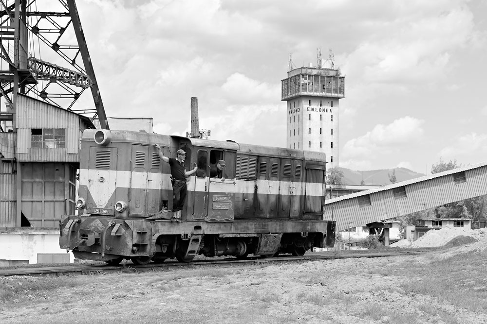 11/06/2014 | Mina Lonea : loco diesel Faur L45H haut-le-pied devant la mine, accompagnée par un garde / Chemin de fer Petrila-Lonea