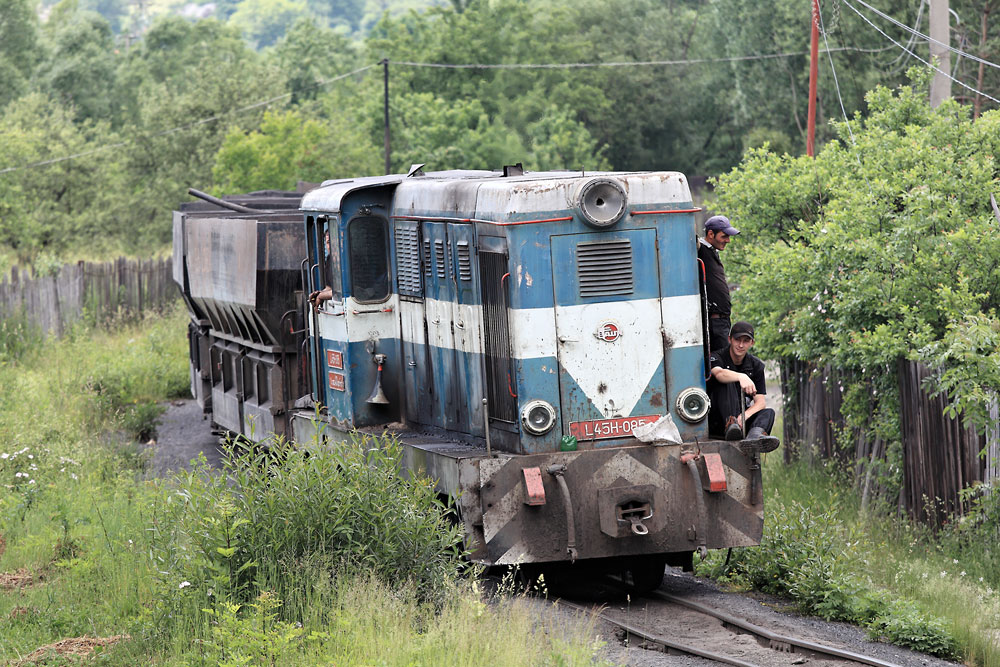 11/06/2014 | Mina Lonea : un train de wagons vides remonte vers la mine, accompagné par un garde / Chemin de fer Petrila-Lonea
