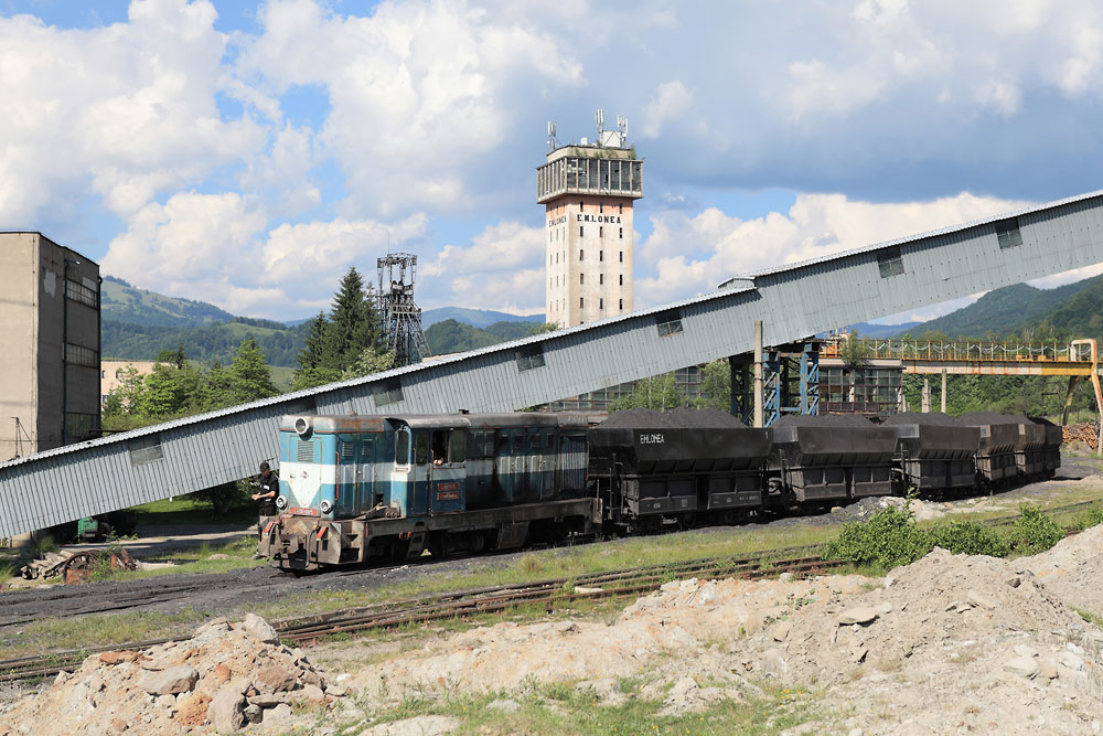 11/06/2014 | Mina Lonea : un train de charbon tiré par une loco Faur L45H quitte la mine / Chemin de fer Petrila-Lonea
