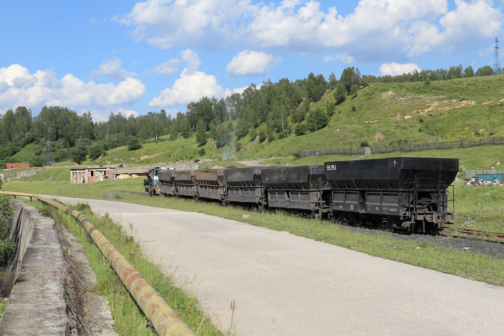 11/06/2014 | Après avoir été déchargé à la mine Petrila, le train remonte à vide vers la mine Lonea / Chemin de fer Petrila-Lonea