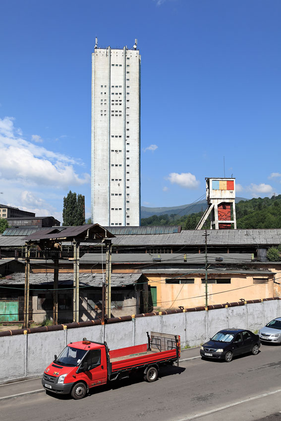 11/06/2014 | Mina Lupeni : grande tour d'extraction du puits ??? (extraction) et chevalement en béton du puits ??? / Lupeni