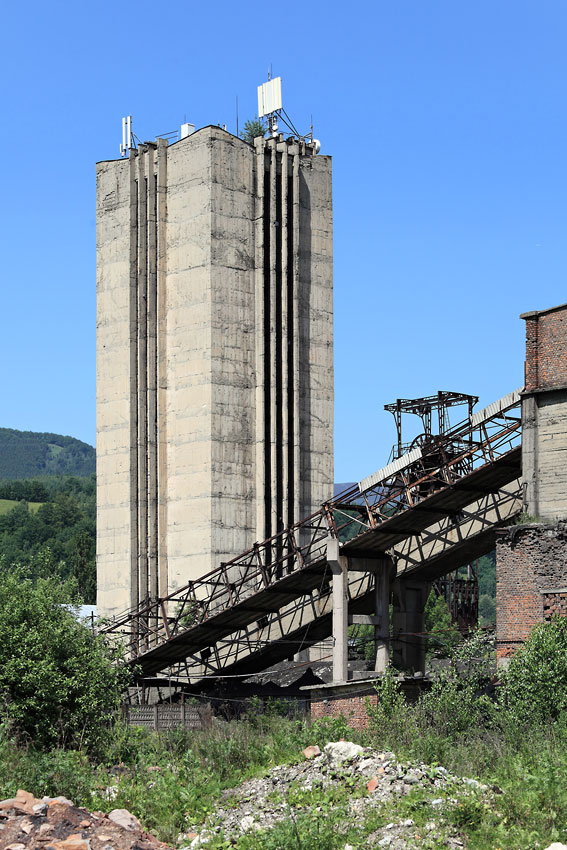 10/06/2014 | Mina Uricani : tour d'extraction du puits ??? (extraction par skips) et convoyeurs vers les trémies de stockage / Uricani