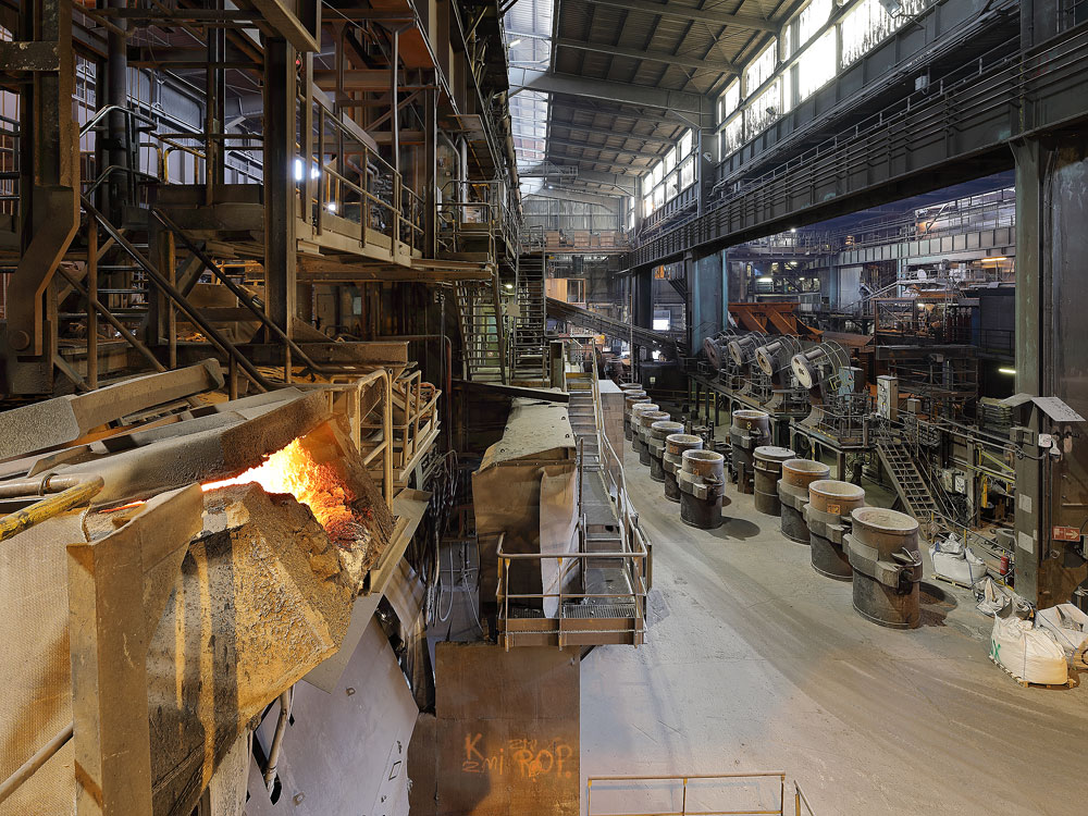 Postes de réchauffage des poches - à gauche un mélangeur à fonte liquide