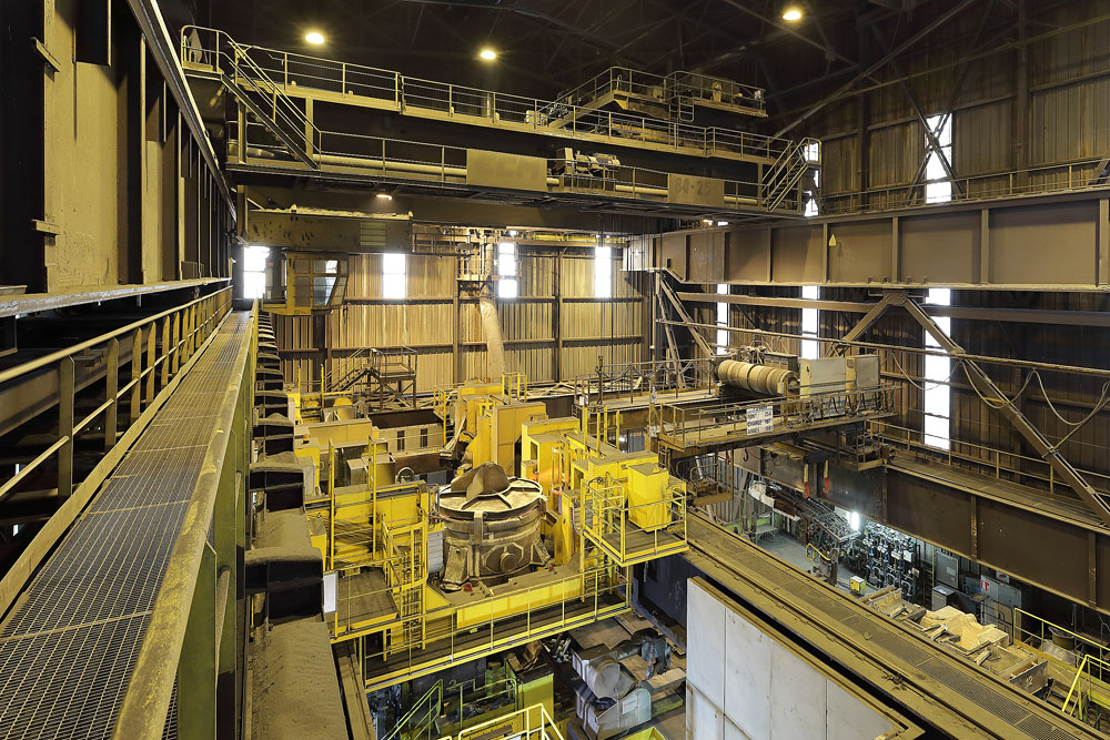 Partie supérieure d'une machine de coulée continue de blooms verticale