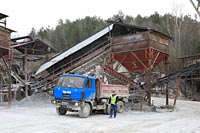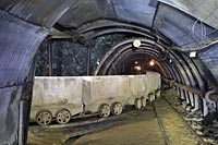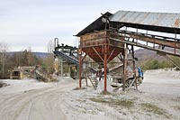 La magnésite est exploitée sur plusieurs niveaux, reliés entre eux par des puits équipés d'échelles en bois pour le personnel. Les mineurs rejoignent les chantiers par un travers-banc situé au niveau supérieur. La magnésite est abattue par foration/tir à l'explosif. Des pelles à air comprimé sur pneu sont alors utilisées pour charger le minerai et le verser dans des puits de jet jusqu'au niveau 0. Il est repris dans des berlines tirées sur un roulage principal par une loco diesel jusqu'à une station de culbutage en bas d'une descenderie routière. La magnésite brute est remontée au jour par des camions qui font la navette vers les installations de concassage/criblage, puis vers l'usine de traitement (lavage, calcination, broyage, criblage, mise en big bags...). Le produit fini peut être livré en wagon-silo, en big bags ou en sacs papier.