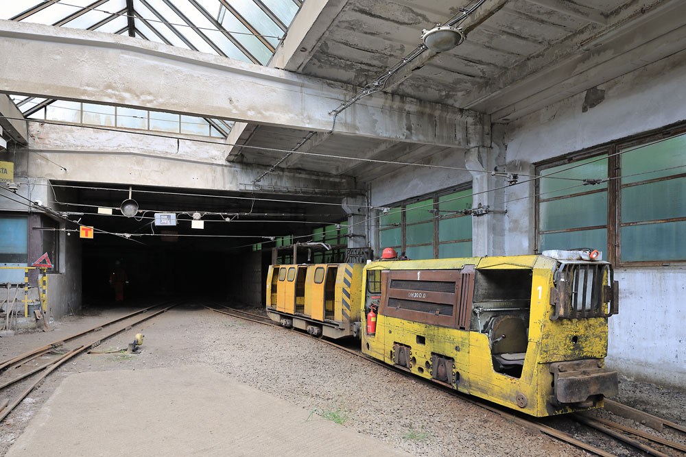 24/05/2022 | Gare principale, côté personnel : loco diesel DH30 D.0 en tête d'un train pour les mineurs, devant l'entrée de la mine