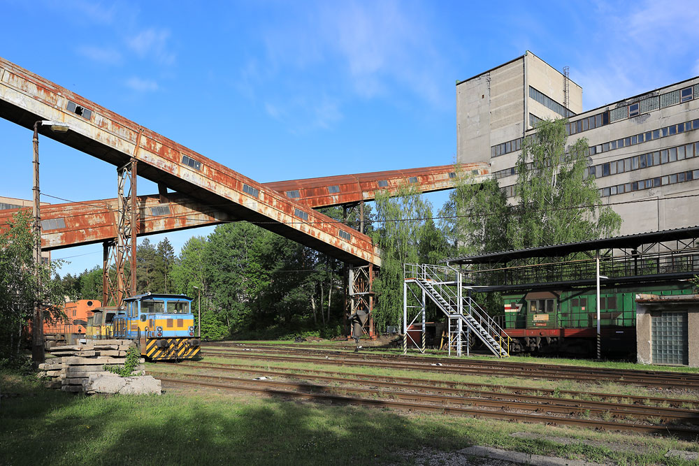 23/05/2022 | Un bâtiment de traitement du charbon et ses convoyeurs à bande, vu depuis l'embranchement ferré de la mine