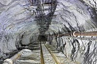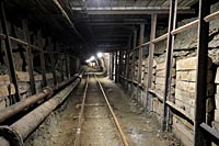Les chantiers sont accessibles par une galerie à flanc de coteau équipée d'une voie de roulage. L'anhydrite est abattue à l'explosif puis chargée dans des berlines à l'aide de pelles à air comprimé de type Eimco. Les trains de berlines sont ramenés au jour par une loco diesel BND30, pour y &eacirc;tre culbutées. L'exploitation se fait sur un seul niveau (niveau 0). Dans le passé 2 niveaux inférieurs étaient exploités (1er et 2ème niveaux). Désormais noyés, ils étaient accessibles par un plan incliné dont subsiste la recette supérieure et sa machinerie.