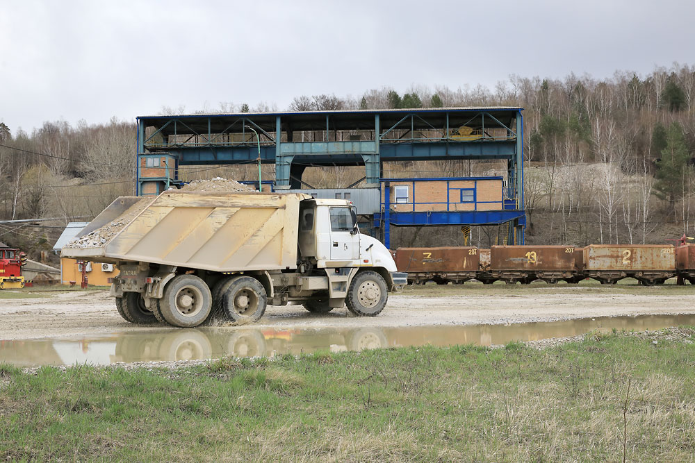 28/03/2023 | Un camion de magnésite passe devant le convoyeur primaire