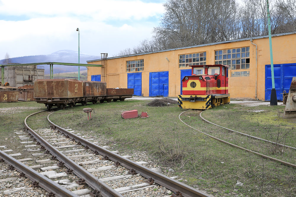 28/03/2023 | Le roulage : wagons pour le transport du minerai brut et loco Schöma n°2 devant la remise à locotives