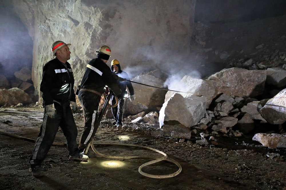 28/03/2023 | Foration au marteau-poussoir d'un gros bloc, dans un chantier exploité en chambres et piliers abandonnés