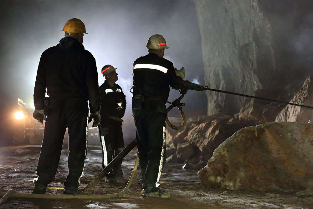 28/03/2023 | Foration au marteau-poussoir d'un gros bloc, dans un chantier exploité en chambres et piliers abandonnés