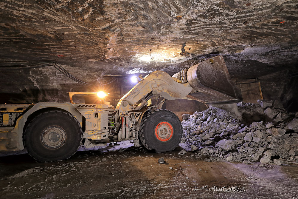 01/06/2021 | Un chargeur-transporteur Atlas-Copco Scooptram® ST1520 déverse le sel brut au niveau d'un poste de concassage primaire