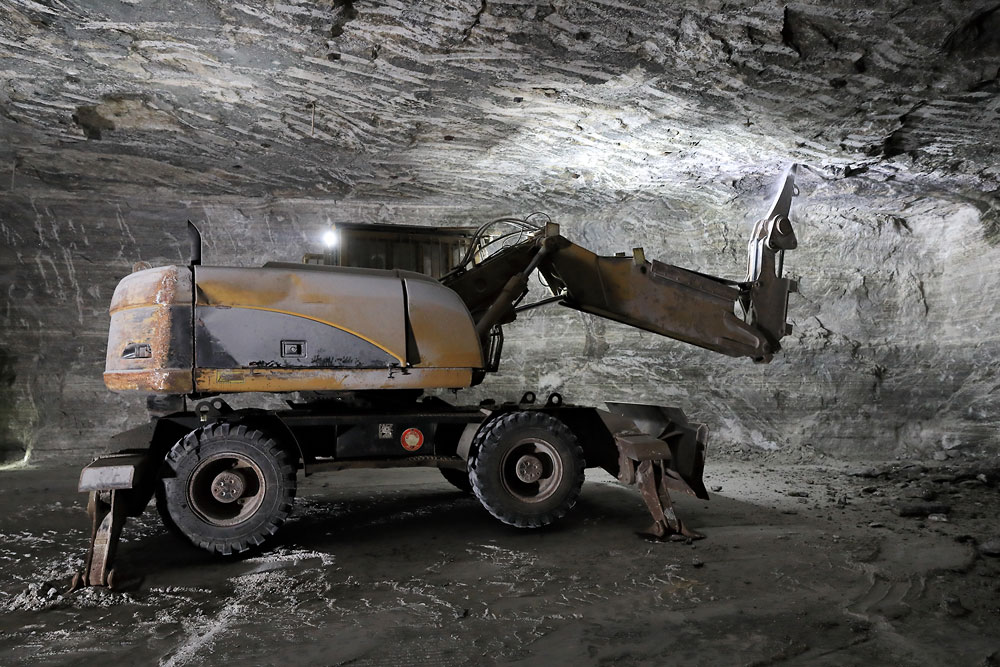 01/06/2021 | Purge du toit d'une galerie avec une pelle hydraulique équipée d'une dent en acier